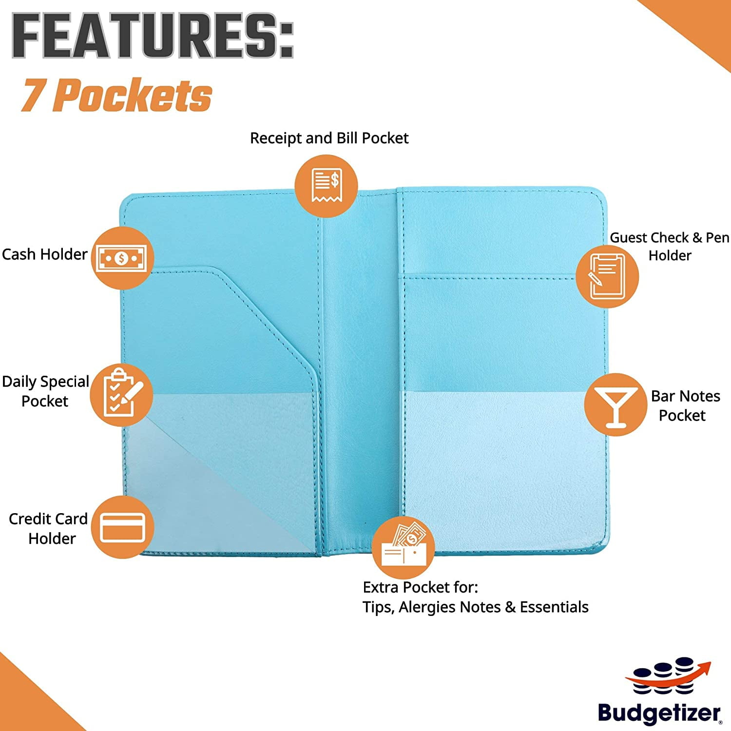 Amazon Com Golgino Server Book For Waitress Waiter 9 X 5 Inch Two Zipper Pockets Id Holder Premium Receipt Organizer Wallet Fits Aprons 11 Money Pockets Perfect For Server Banking Black Blue